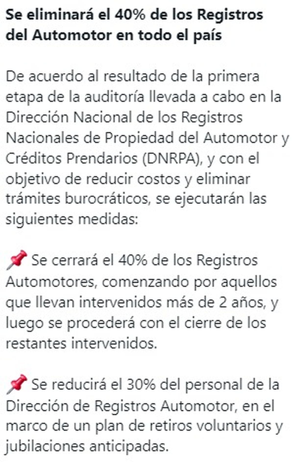 Méndez explicó que a excepción del cierre, reubicación de los legajos en otros Registros del Automotor y despidos de personal, todos los demás puntos del comunicado son aplicables en lo inmediato en Mendoza.
