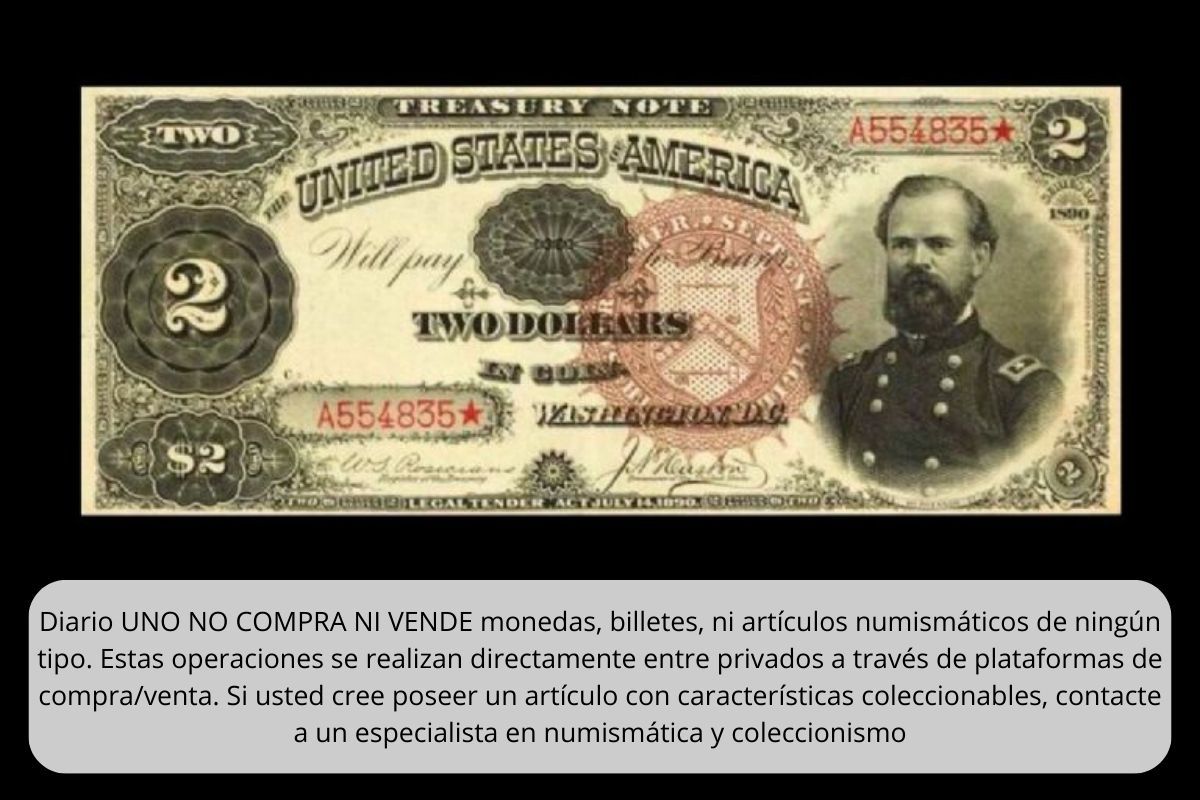 ¿Cómo es el billete de 2 dólares tan buscado por coleccionistas de monedas y billetes?