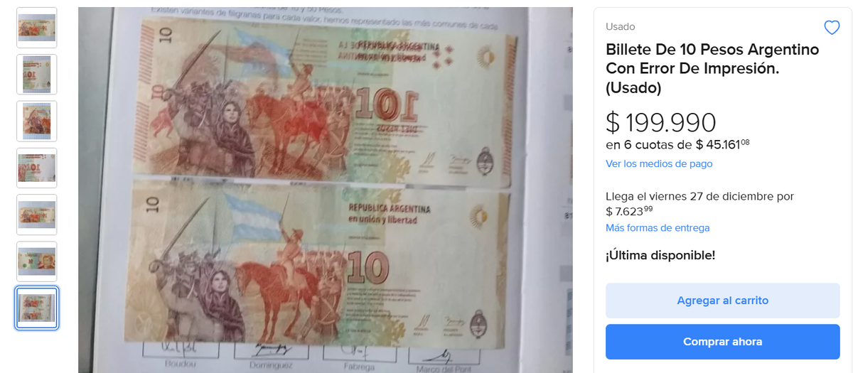 Muchas personas tienen monedas y billetes viejos por el solo hecho de guardarlos. Otros, en tanto, se deshacen de cualquier ejemplar que pueda tener un error, sin saber que justamente eso puede hacer que este en realidad sea muy valioso para los coleccionistas. Puede ocurrir con billetes de 100 dólares o con un billete de 10 pesos que ya nadie quiere tener en su billetera por el poco valor que poseen.