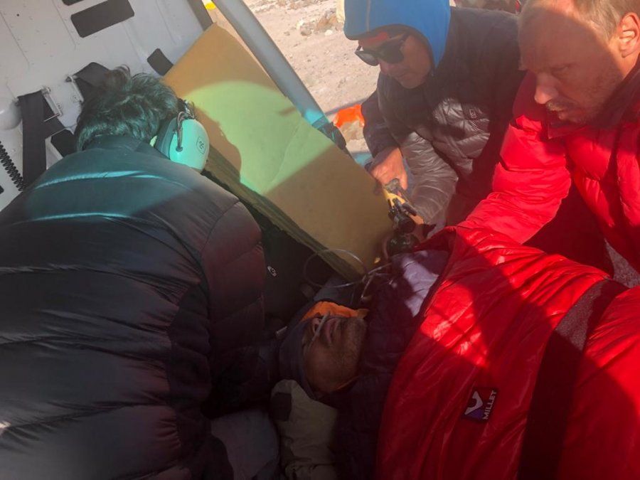 La patrulla tomó contacto con el andinista en el campamento Nido de Cóndores (5.380m), y al notar que había perdido el conocimiento, decidieron pedir el apoyo del helicóptero del parque, que logró bajarlo hasta Horcones, donde lo esperaba la ambulancia del SEC para trasladarlo de inmediato al hospital de Uspallata.