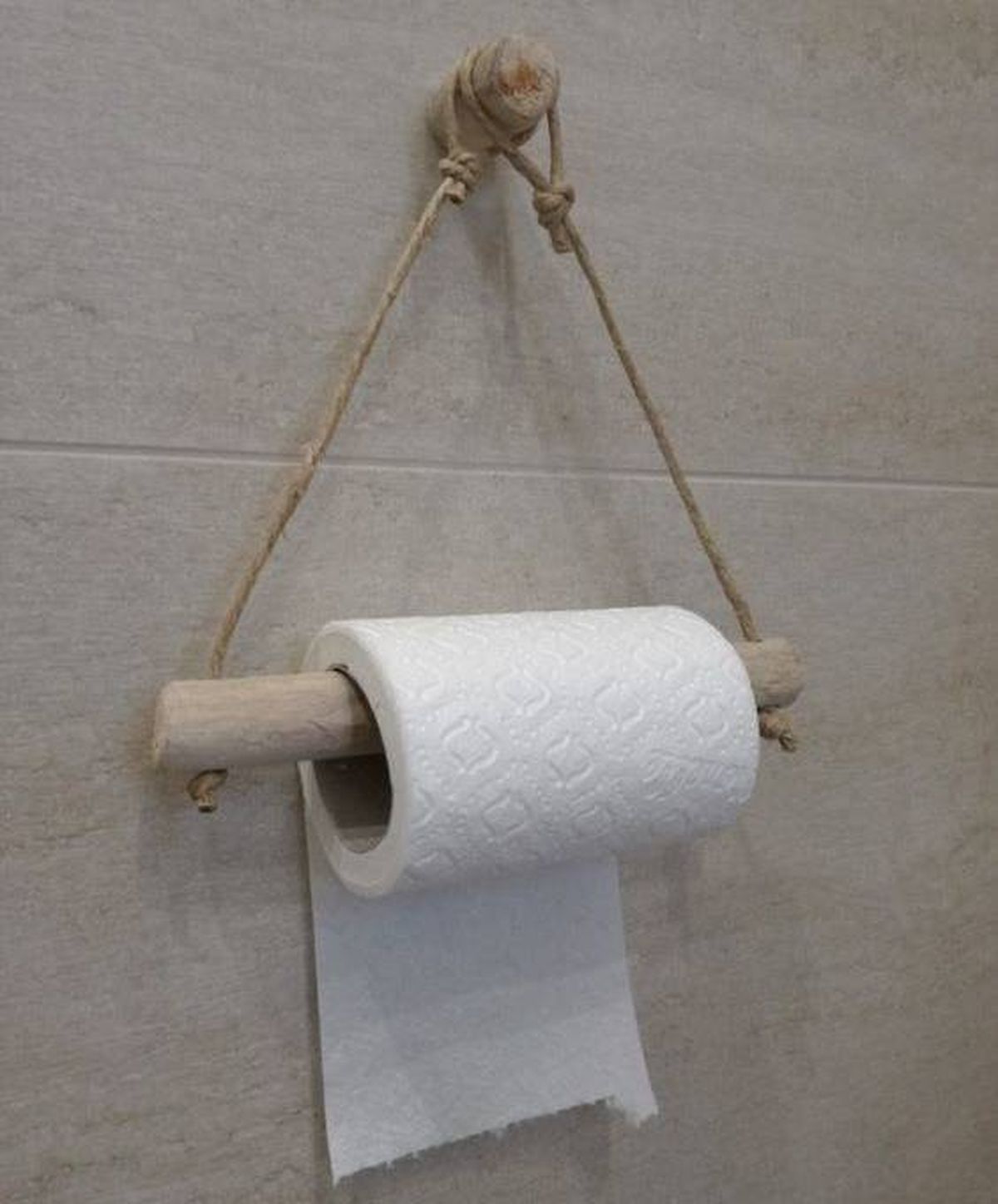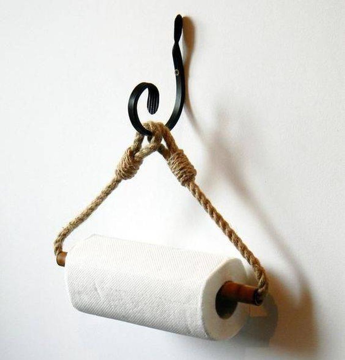 Por último, te quedará clavar el gancho de metal a la pared y enganchar el servilletero o porta papel higiénico como se ve en las fotos y listo.