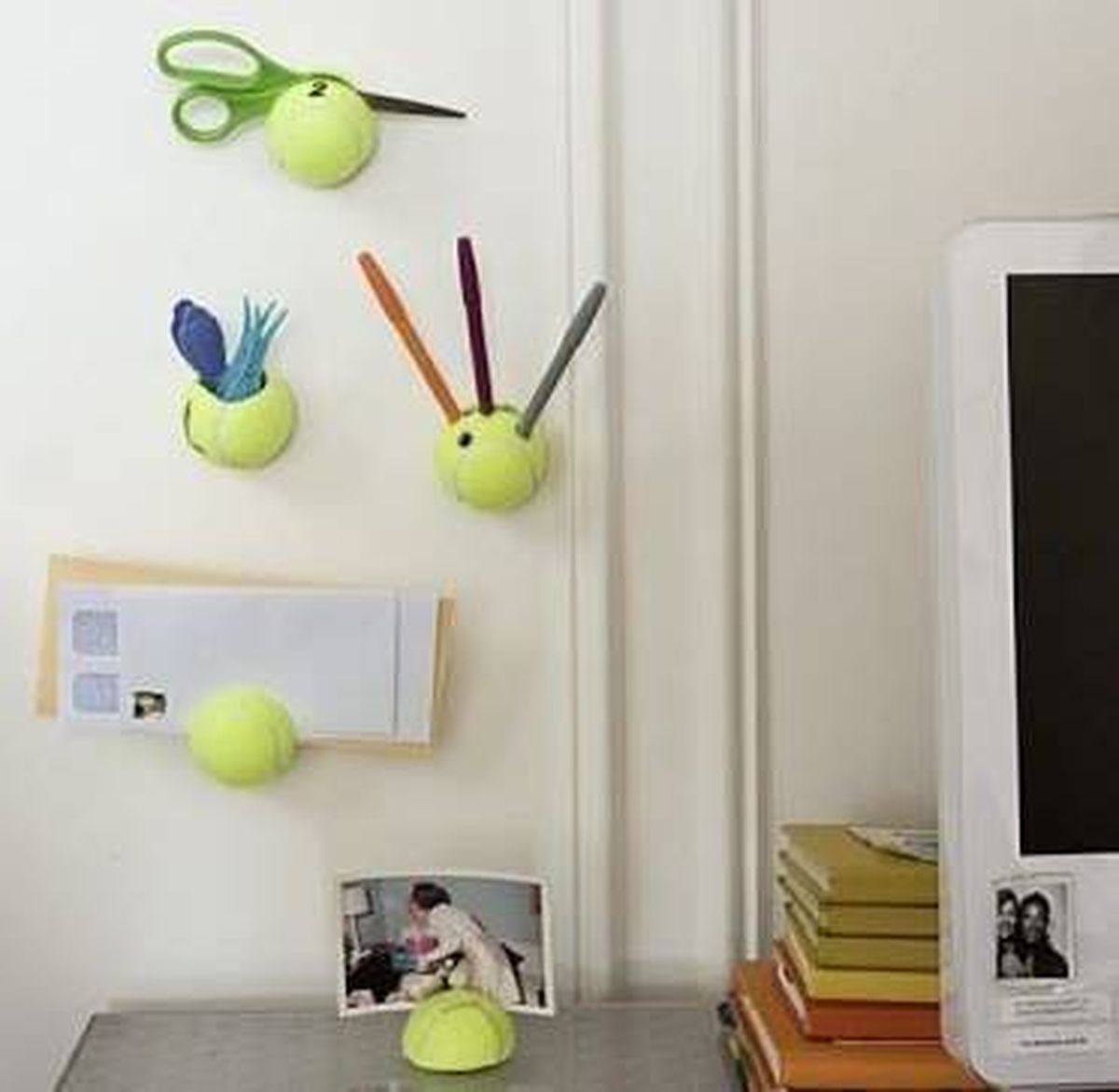 Si tienes pelotas de tenis ocupando lugar innecesariamente en los cajones de tu casa, sácalas y conviértelas en estas hermosas opciones DIY. Te ayudarán a tener las cosas importantes a mano y lo mejor es que podrás jugar con el diseño dándole tu toque personal.