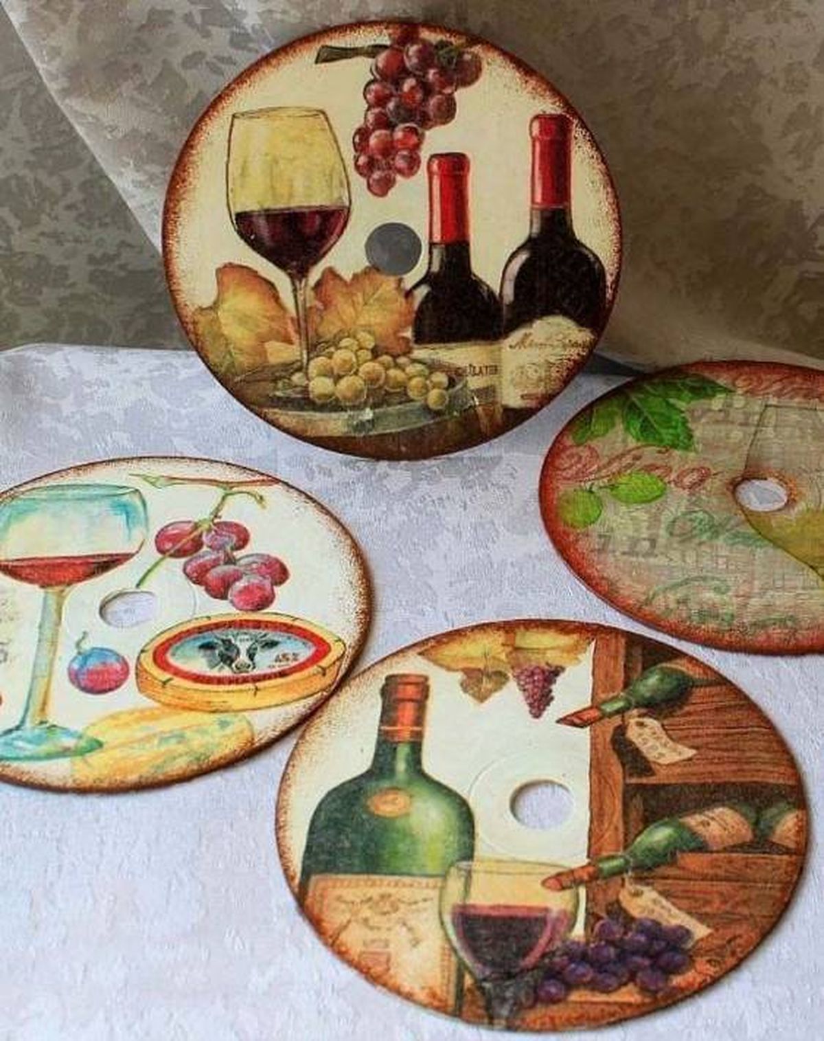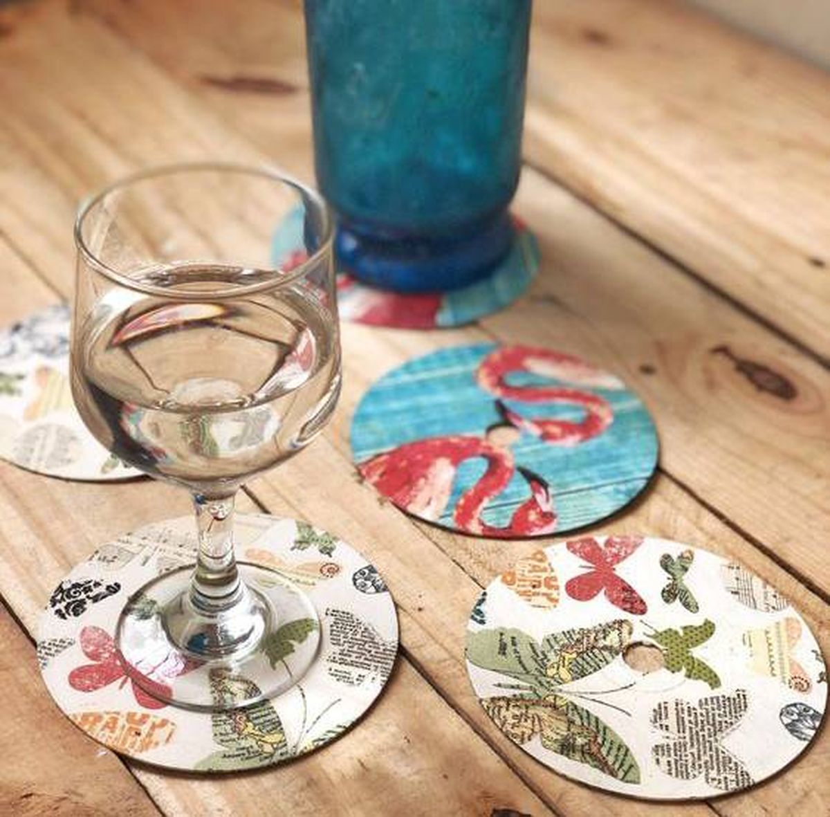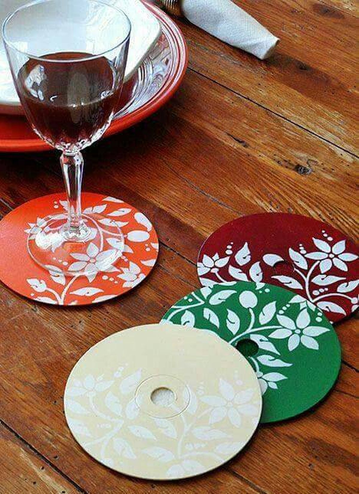 Para comenzar toma los CD y los DVD viejos que tienes en tu casa y límpialos con un poco de alcohol y algodón. Luego toma la servilleta con el diseño que más te guste para pegarla con la técnica manual llamada "decoupage". La misma consiste en pegar papeles impresos o telas sobre distintas superficies de modo que parezcan como si se hubiesen pintado a mano.