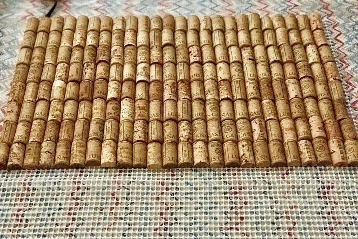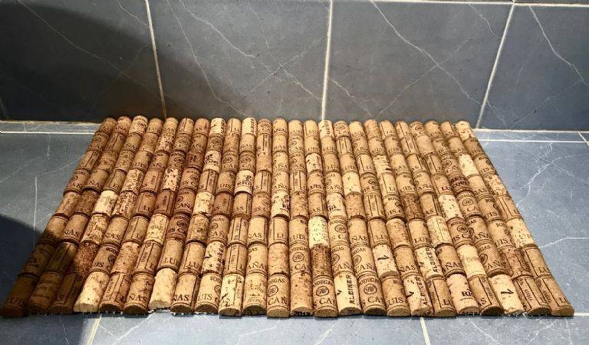 Para empezar limpia bien todos los corchos y luego córtalos longitudinalmente por la mitad. Después toma la plancha antideslizante y resistente a la humedad de la medida que quieras y comienza a pegar uno por uno los corchos siguiendo el patrón de diseño que más te guste.