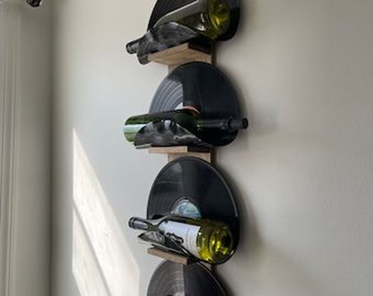 Una excelente idea DIY para hacer con los discos de vinilo que no funcionan más es crear con ellos este original vinoteca para guardar los vinos que tienes en casa.