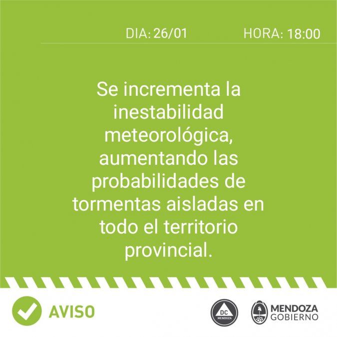 Varias celdas de tormentas se ubicaron en diferentes zonas de Mendoza durante la jornada de este martes, hacia la noche rige una alerta para todo el territorio provincial por un incremento en la inestabilidad.