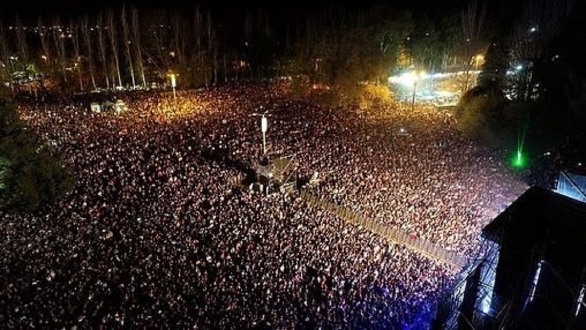 Desde temprano el parque Hipólito Yrigoyen recibió a decenas de miles de personas de todas las edades, quienes se apostaron en el predio detrás del teatro griego Chacho Santa Cruz para disfrutar de shows de artistas locales y esperar el gran cierre a cargo de Valentino Merlo.