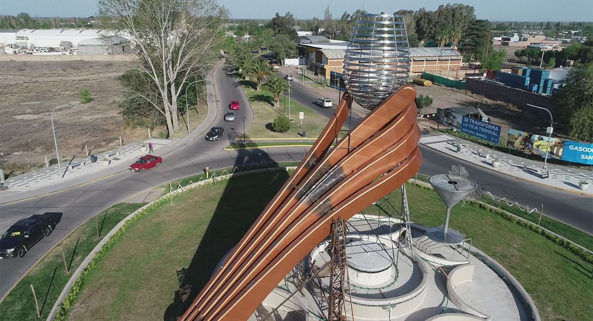 Desde la comuna explicaron que la "frutilla del postre" de la inversión que realizó el Municipio en ese lugar es una megaescultura que rinde homenaje al vino, la bebida nacional.