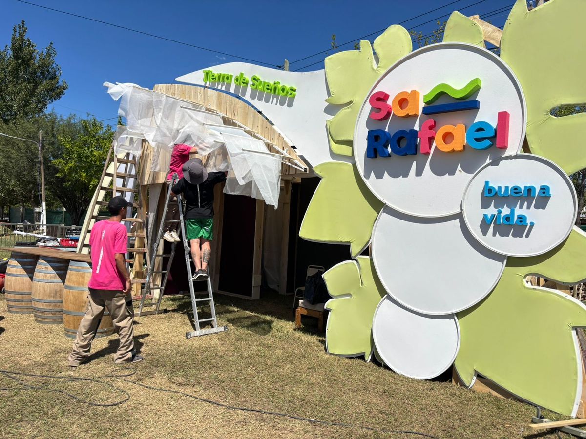 Los equipos de trabajo finalizaron el montaje del stand institucional, donde se promocionará a la soberana Azul Antolinez, candidata al cetro vendimial provincial, junto con los principales atractivos turísticos y culturales de la municipalidad de San Rafael.
