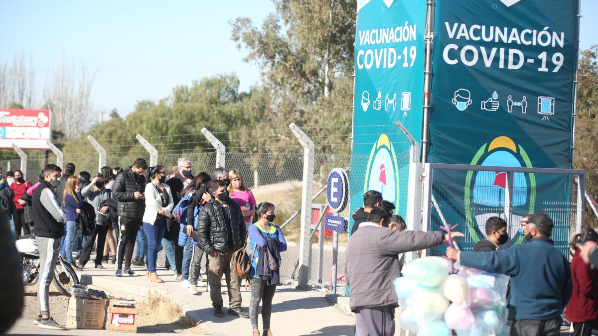Durante la mañana de este viernes se formaron largas filas en el Estadio Aconcagua Arena del Parque General San Martín de docentes que esperaban ponerse la segunda dosis. La fila se extendía durante casi dos kilómetros y llegaba a la altura de la Escuela Hogar Eva Perón.
