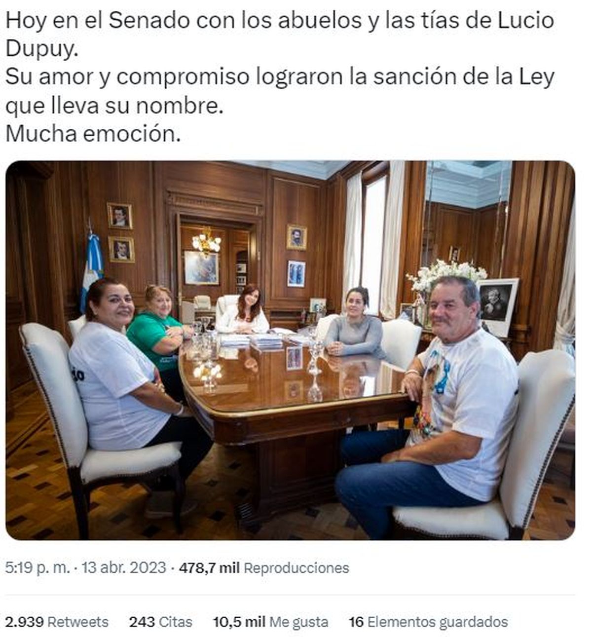 En la sesión en la que se debatió el proyecto en la Cámara de Senadores, la legisladora por Santa Cruz, María Belén Tapia, dijo que “el abuelo de Lucio fue un ejemplo porque sacó fuerzas de donde tal vez no sabía que las tenía al pedir justicia”. Y recordó que todos los espacios políticos habían presentado distintos proyectos sobre este tipo de casos desde hace tiempo.