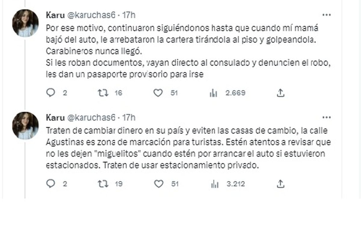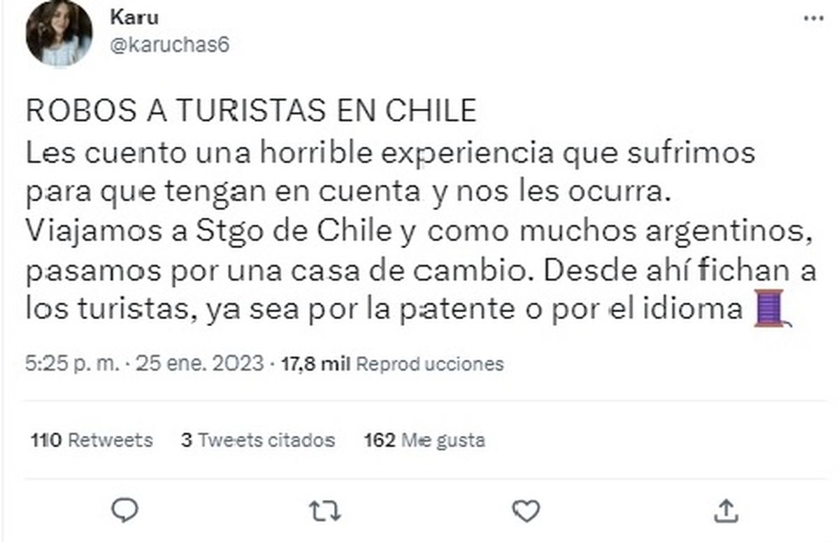 La usuaria mendocina de Twitter Karu -@karuchas6- también comentó que había sido víctima de una modalidad de robo que al parecer, es muy frecuente.