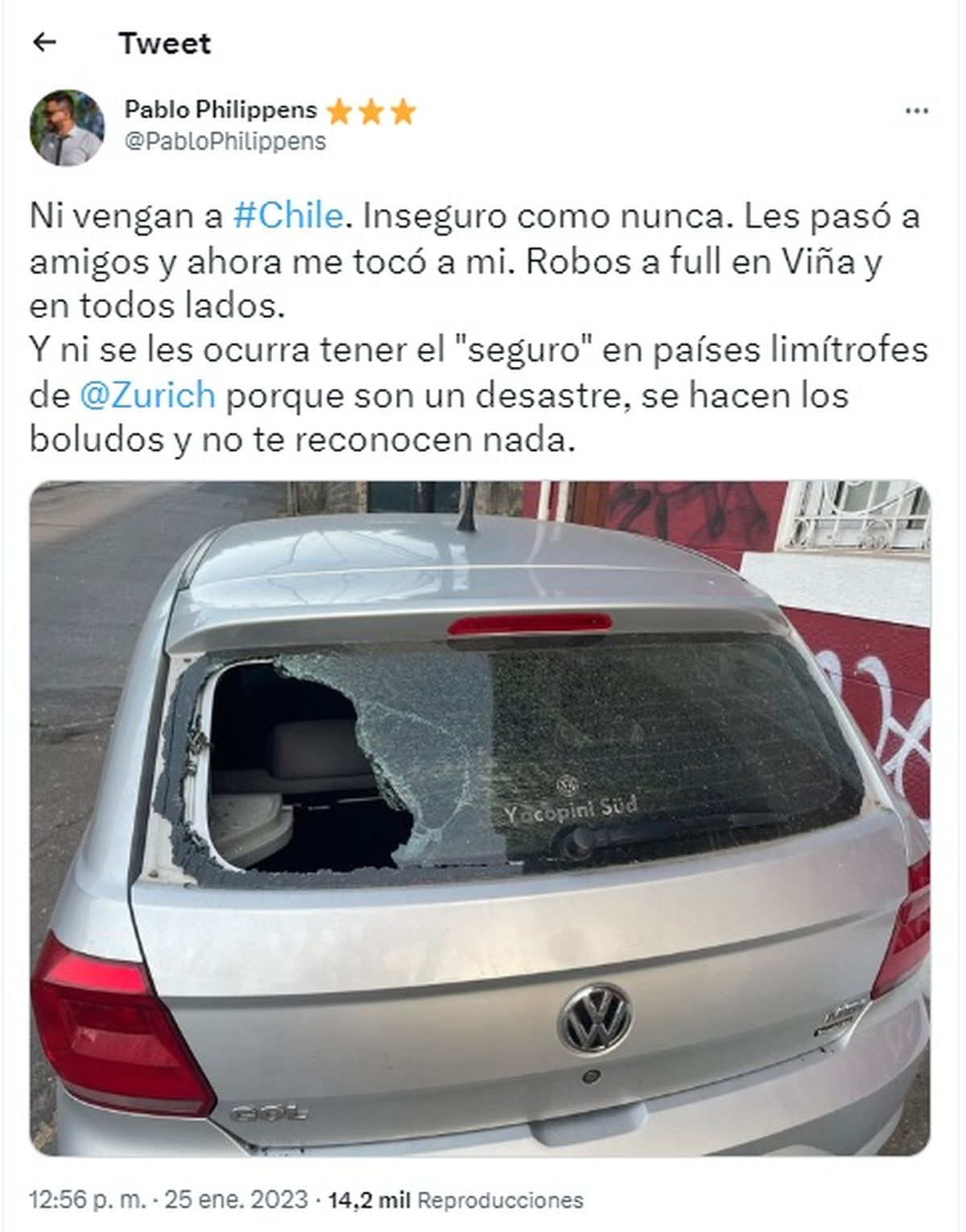El periodista mendocino Pablo Philippens compartió en Twitter lo que le sucedió mientras pasaba sus vacaciones en Viña del Mar junto a su familia, y también lo hicieron otros turistas mendocinos que sufrieron esta modalidad delictiva.