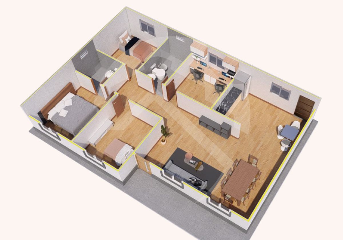 Cuatro dormitorios y un precio que en nada se parece a los montos que se manejan de una vivienda tradicional. Esta casa prefabricada es uno de los tantos modelos que ofrecen diferentes empresas para hacer que muchas personas puedan cumplir con el anhelo de vivienda propia.