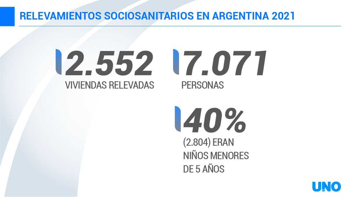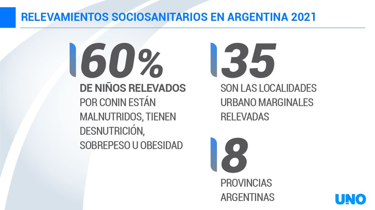 Así lo explicó Gabriela Sabio, Directora Médica de CONIN, que dialogó con los periodistas del Noticiero Siete en el mediodía de este lunes. "Se relevaron a nivel nacional 2.500 viviendas, y a más de 7.000 personas, de los cuáles 2.800 eran niños de menos de cinco años. Se hizo en zonas urbano-marginales cercanas a los Centros CONIN, y se anotaron características muy especiales: el 70% no tiene cloacas, el 17% no tiene acceso al agua (potable), y casi nadie tiene agua caliente o no tienen baño".