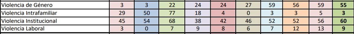 En cuanto a la laboral, sí bien son pocos los casos, también se han incrementado.