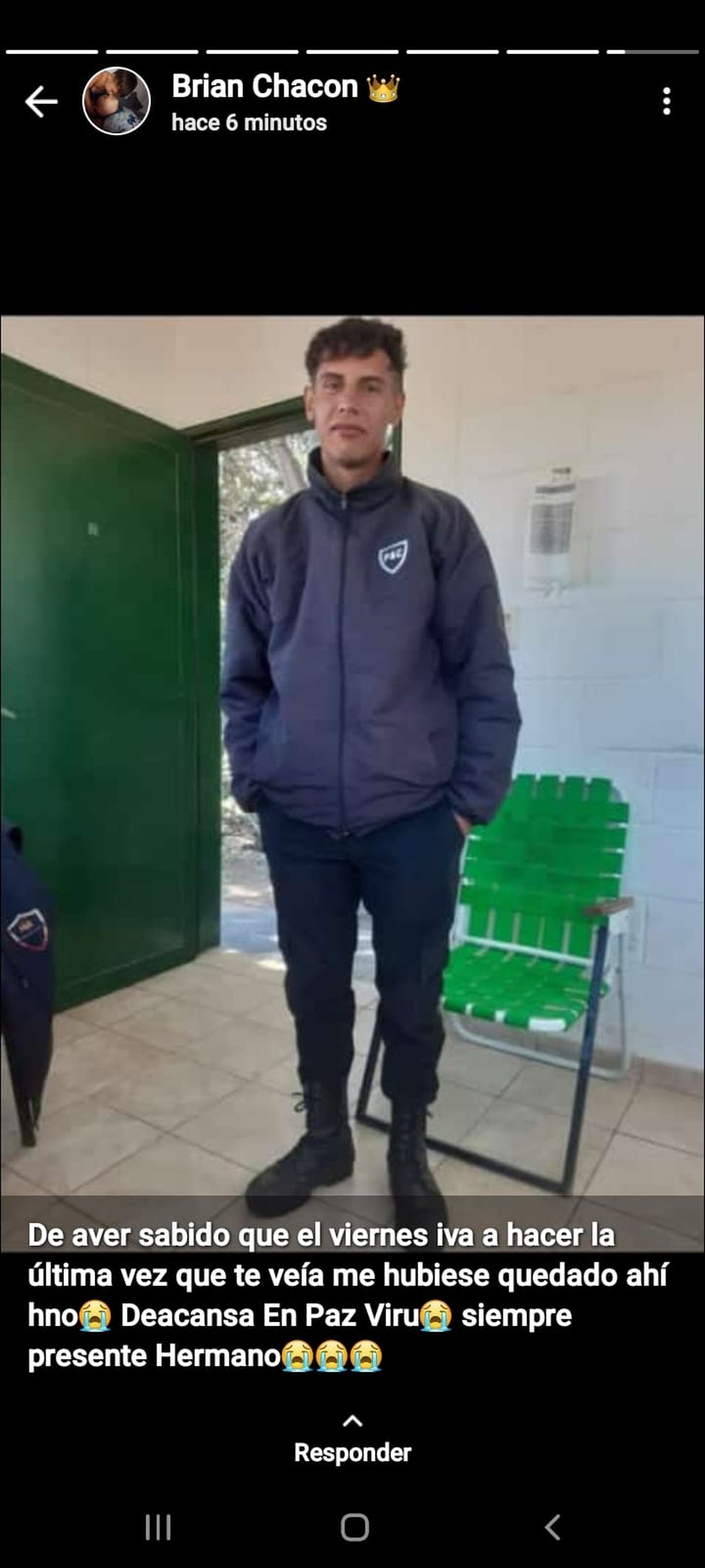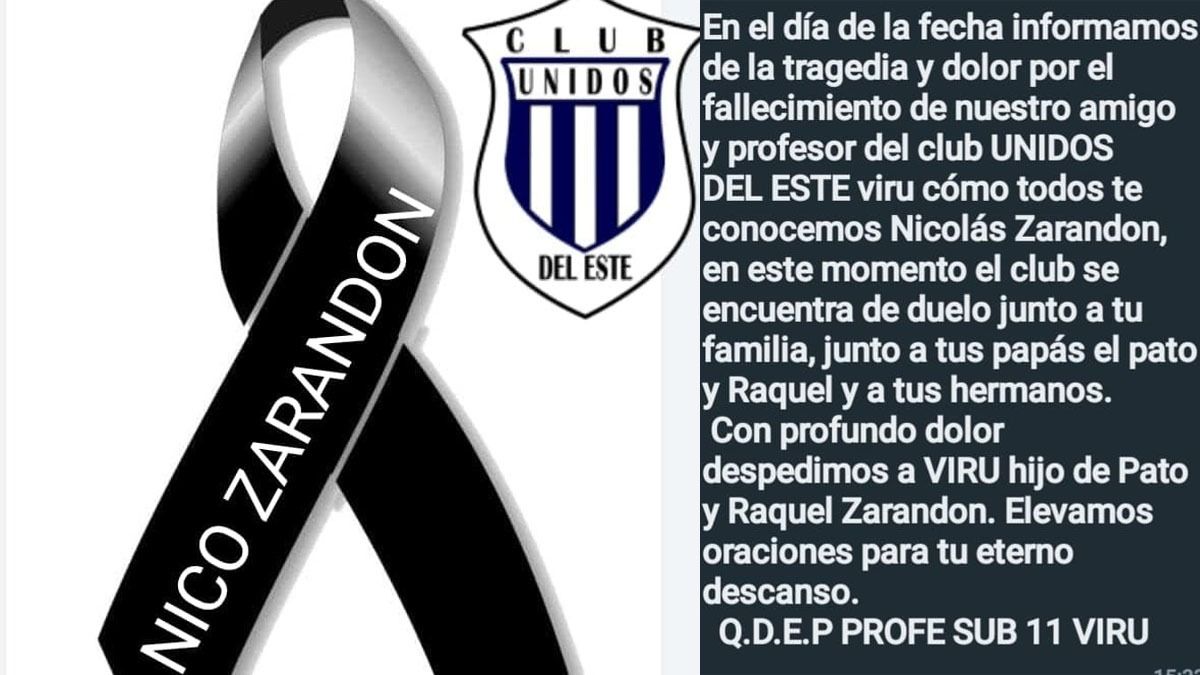 "Nuestro club Unidos del Este está de luto. Se nos fue un gran amigo, compañero y gran persona, nuestro profe de la categoría 11. Un crack Viru como te decíamos: nos dejaste con gran vacío. Dios te tenga en su santa gloria, dale mucha fuerza a tus papis y hermanos", posteó en Facebook una de sus amigas.