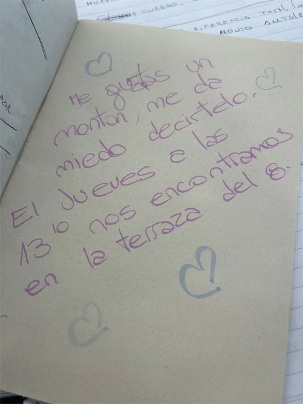 La nota, aparentemente sencilla pero contundente, decía: “Me gustás un montón, me da miedo decírtelo”. Sin embargo, lo que más incomodó a Evelyn fue la parte final, donde se proponía un encuentro: “El jueves a las 13:10 nos encontramos en la terraza del 8″.