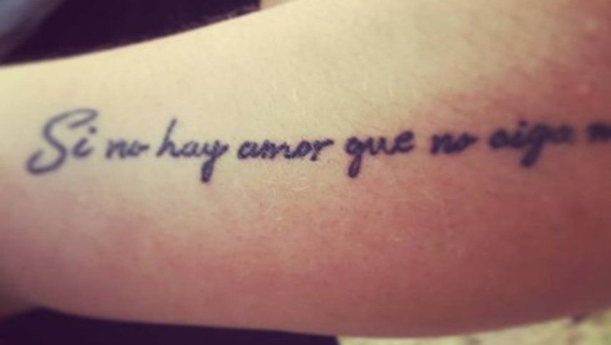 Jeni contó con sus palabras, con un poquito de pudor por el error involuntario, mitad propio, mitad del tatuador, como quedó en su piel la frase que representa un momento de su dura vida.