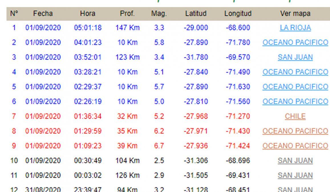 Después del fuerte sacudón, se sucedieron varios temblores más durante toda la noche, con epicentro nuevamente en el Océano Pacífico, en San Juan, en Chile y en La Rioja.