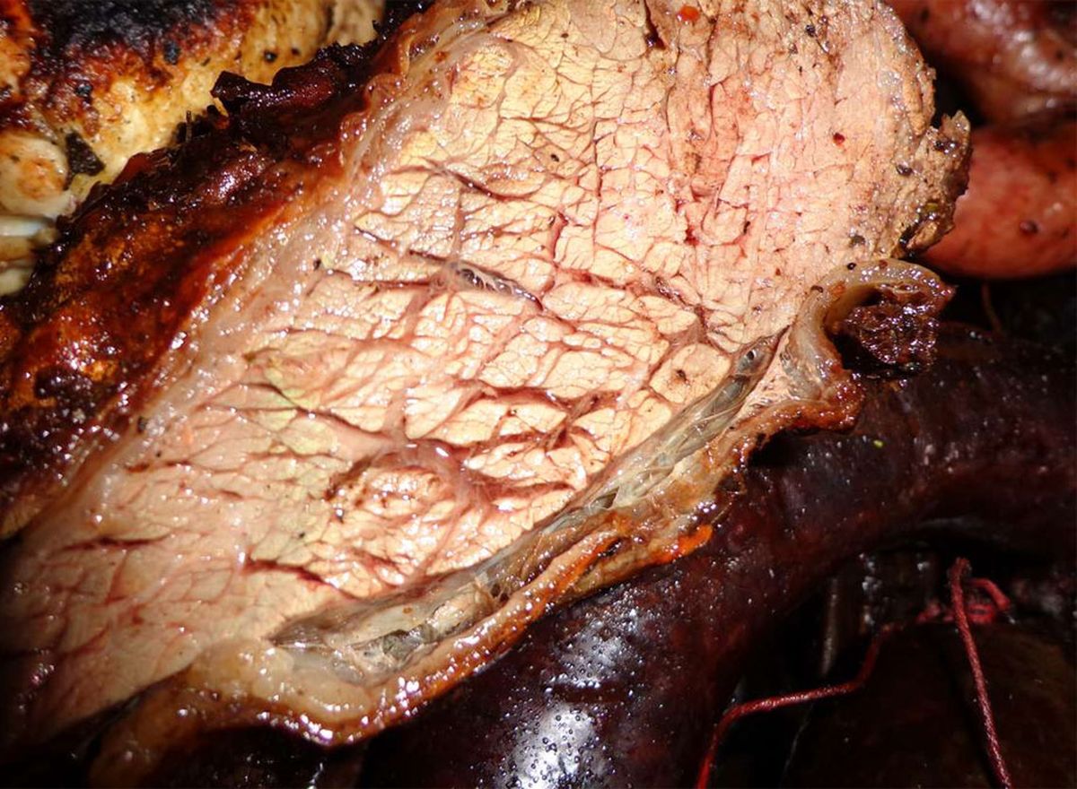 - Se coloca del lado de la grasa para abajo y a fuego medio, por una hora aproximadamente. Luego se voltea y se repite el proceso por unos 50 minutos. La clave es no apurarlo, primero para que no se arrebate, y segundo, para favorecer su terneza al sacarla de la parrilla.