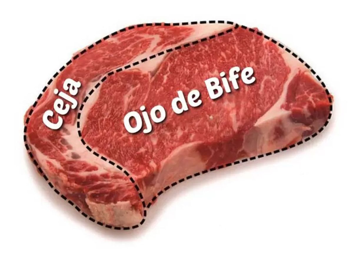 La pestaña de bife básicamente es la tapa del ojo de bife. Es un corte que hasta se puede separar con las manos y está situada en la parte superior del bife ancho.