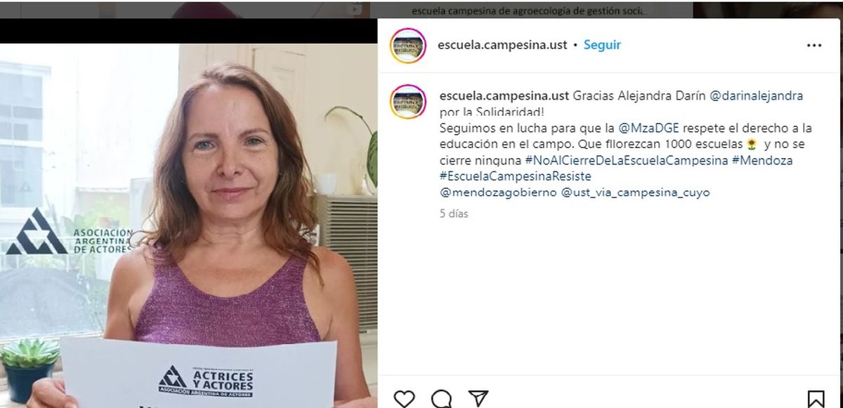 Alejandra Darín colaboró con el apoyo de la Asociación de Actrices y Actores Argentinos.