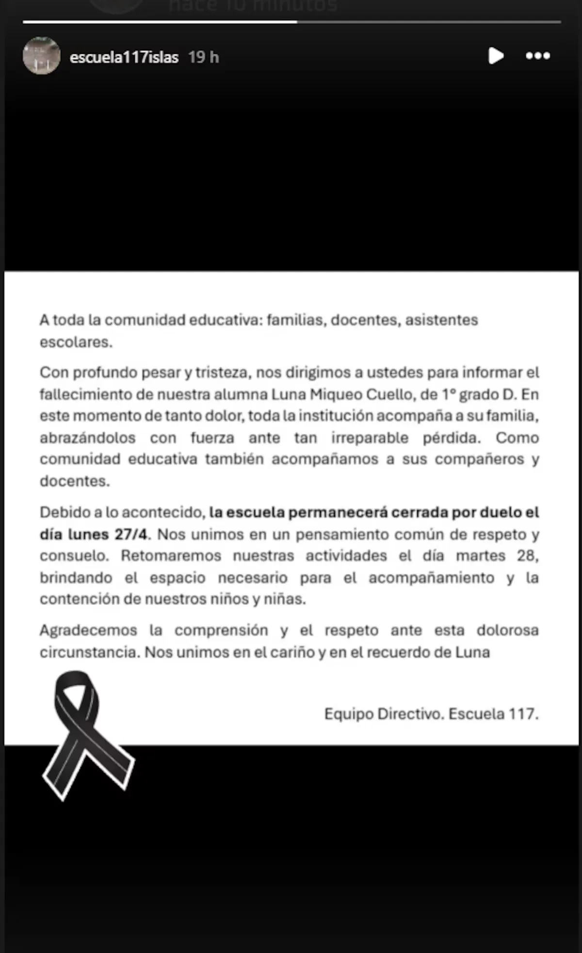 Sin embargo, el testimonio de Ricardo Abel Miqueo, padre de Luna, contradice el eje central del informe escolar. En declaraciones radiales, Ricardo relató una secuencia que siembra dudas sobre la transparencia del relato oficial.