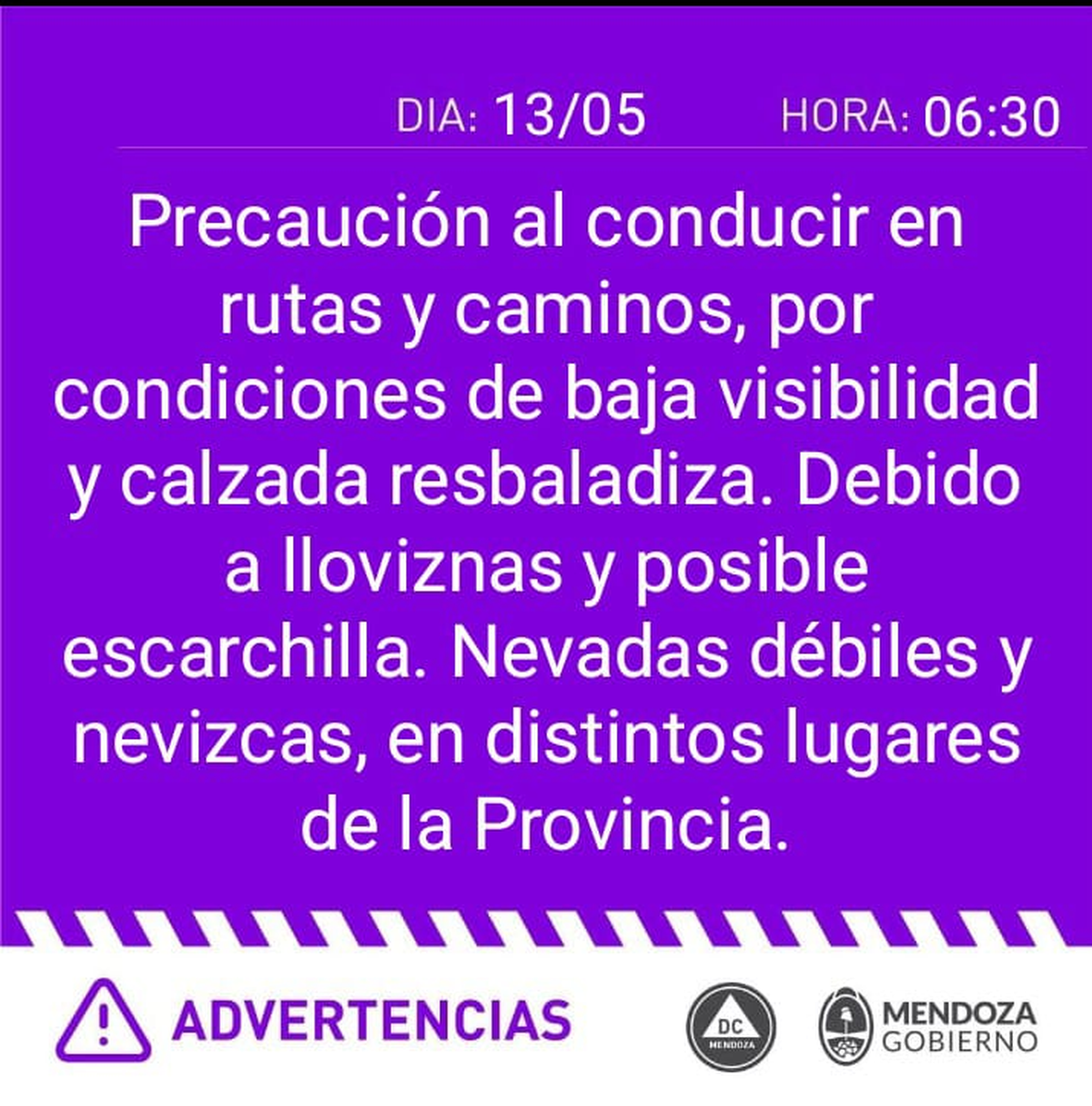 Por las nevadas del lunes se suspendieron las clases presenciales en el turno mañana en Malargüe, Tupungato, Manzano Histórico, Potrerillos, El Sosneado y zonas Sur y Oeste de San Carlos.