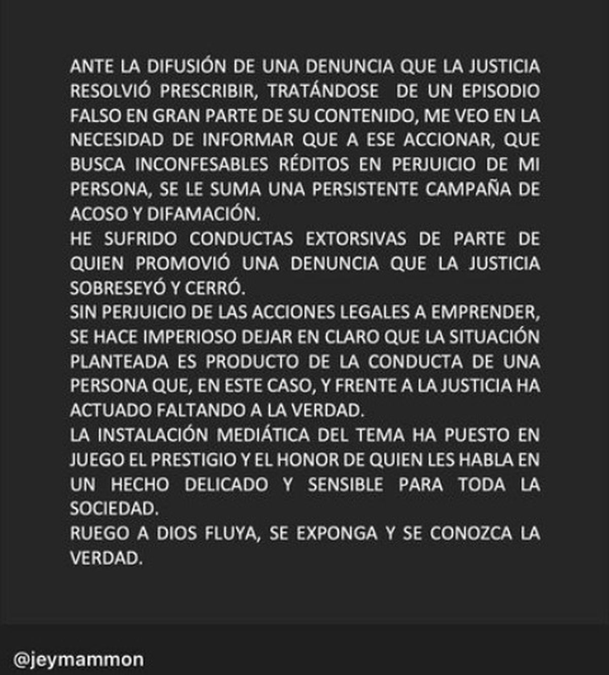 A continuación, el descargo que publicó Jey Mammón en las redes: