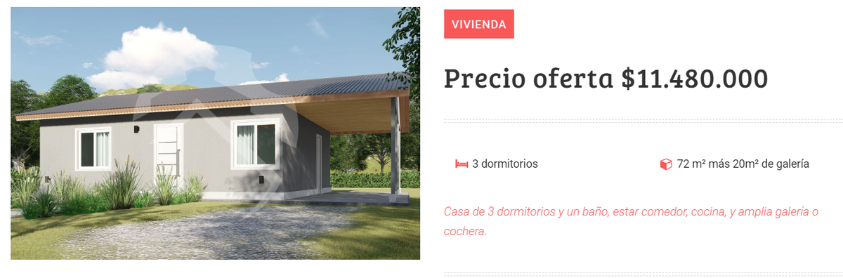 La principal ventaja que tiene una casa prefabricada es el precio, pero no es la única, ya que también son muy rápidas a la hora de construirse y suelen ser muy atractivas a la vista. Un ejemplo de ello es este modelo de vivienda comercializado por la empresa Tu Cassa y que cuesta $11.480.000, cifra que en dólar blue equivale a 9.500 dólares.