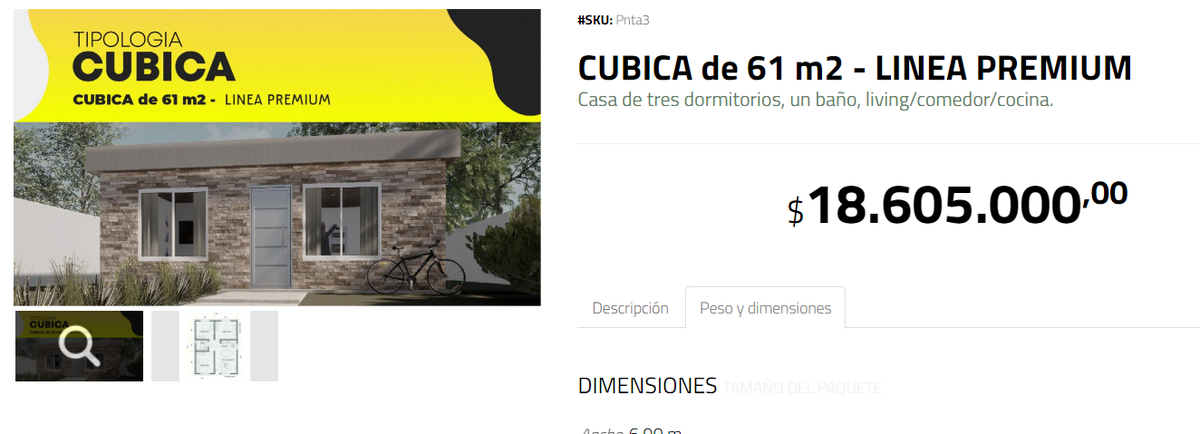 Pero una casa prefabricada también tiene, entre sus ventajas, que son tan fáciles de construir que su entrega se hace de manera muy rápida. Una de ellas, por ejemplo, la comercializa la empresa Pronta Viviendas a un valor de $ 18.605.000 que, en dólar blue, equivale a 14.900 dólares.