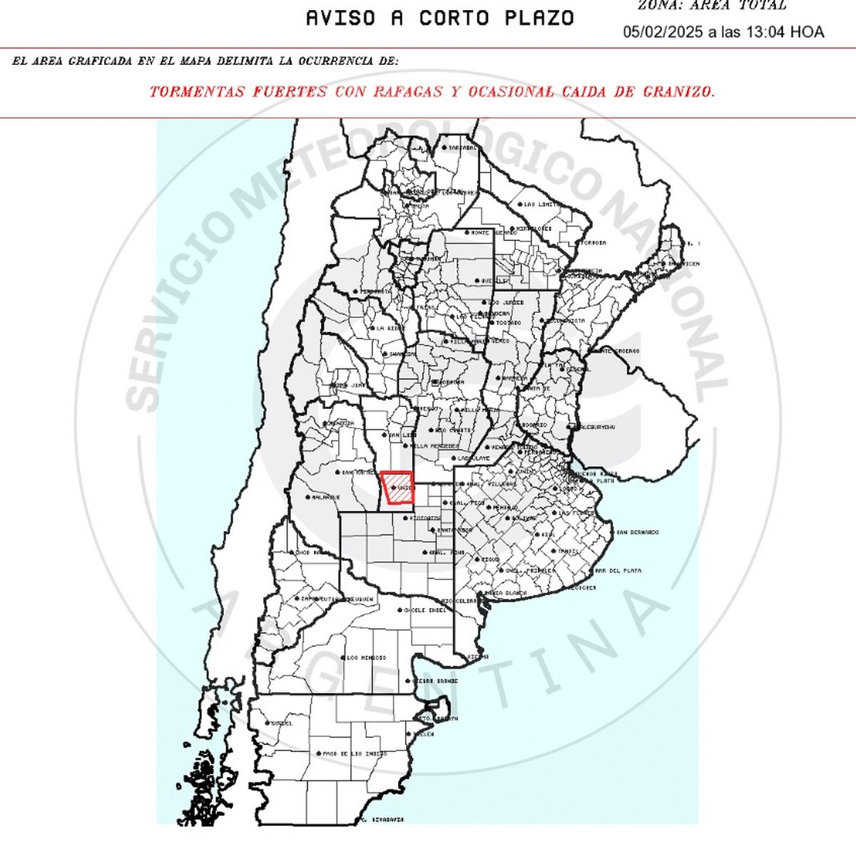 El Servicio Meteorológico Nacional emitió un alerta de emergencia por la caída de granizo en esta provincia de Cuyo. Los avisos meteorológicos a muy corto plazo (ACP) son pronósticos inmediatos. A continuación te contaremos que provincia se ve involucrada en este desastre climático.