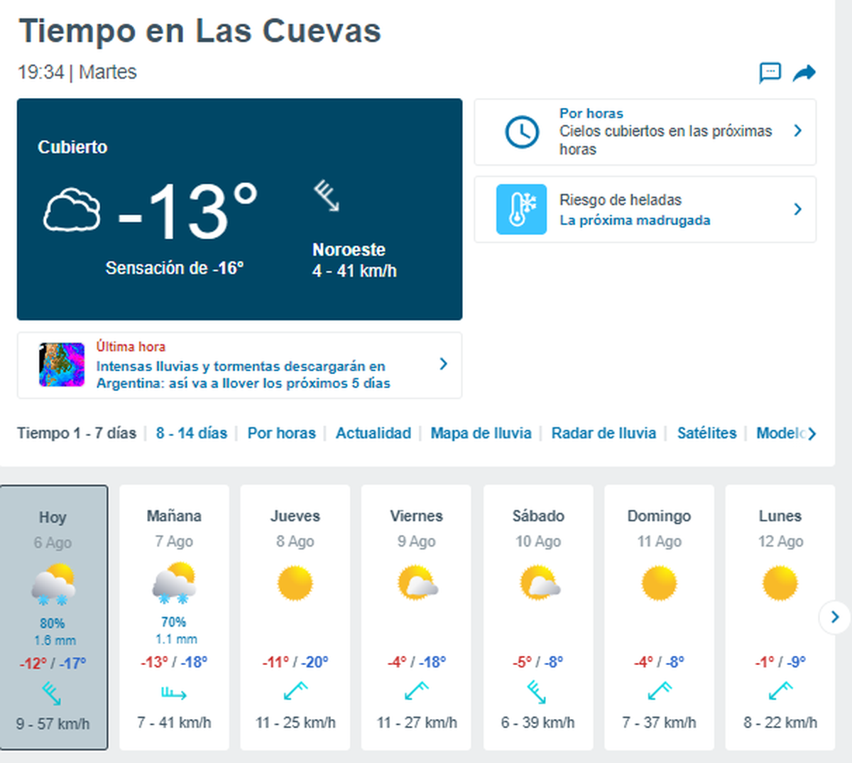 El tiempo en alta montaña en Mendoza también presenta novedades. Desde este jueves 8 de agosto, se anticipa una mejora en las condiciones climáticas, con cielos despejados pero un incremento en el frío. Las temperaturas mínimas alcanzarán los -18°C este martes y miércoles, con nevadas. Sin embargo, desde el jueves y hasta el domingo, se espera buen tiempo sin precipitaciones.