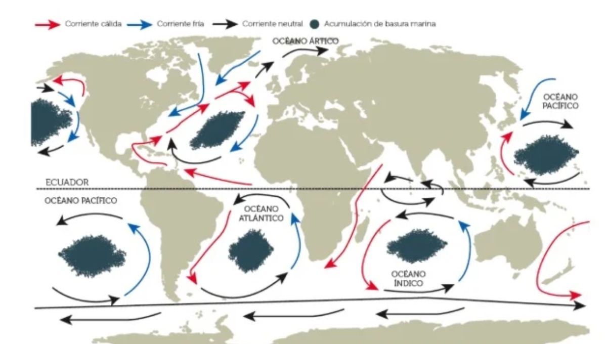 Según la BBC, este continente de plástico se origina por la acumulación de desechos plásticos en los océanos, impulsados por las corrientes marinas y los giros oceánicos. Además de concentrar gran cantidad de basura, representa un peligro para la fauna marina, que puede ingerir estos residuos.