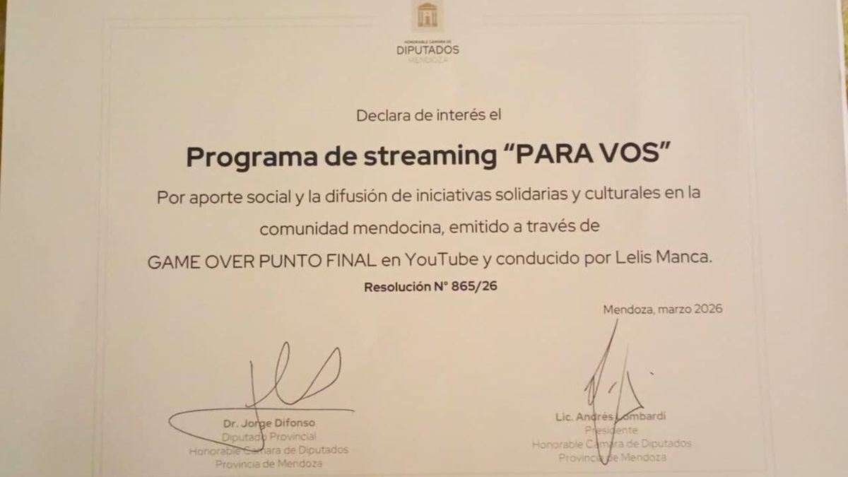 Así nació “Para vos”, un programa de streaming que empezó el 12 de septiembre de 2024 casi como una apuesta personal y que terminó siendo reconocido en la Legislatura provincial como de interés social y cultural. La distinción se entregó el miércoles 18 de marzo, en el Salón de los Pasos Perdidos, con el respaldo unánime de la Cámara de Diputados. Un reconocimiento que no es menor, sobre todo para un proyecto que creció desde lo independiente y con un objetivo que nunca cambió.