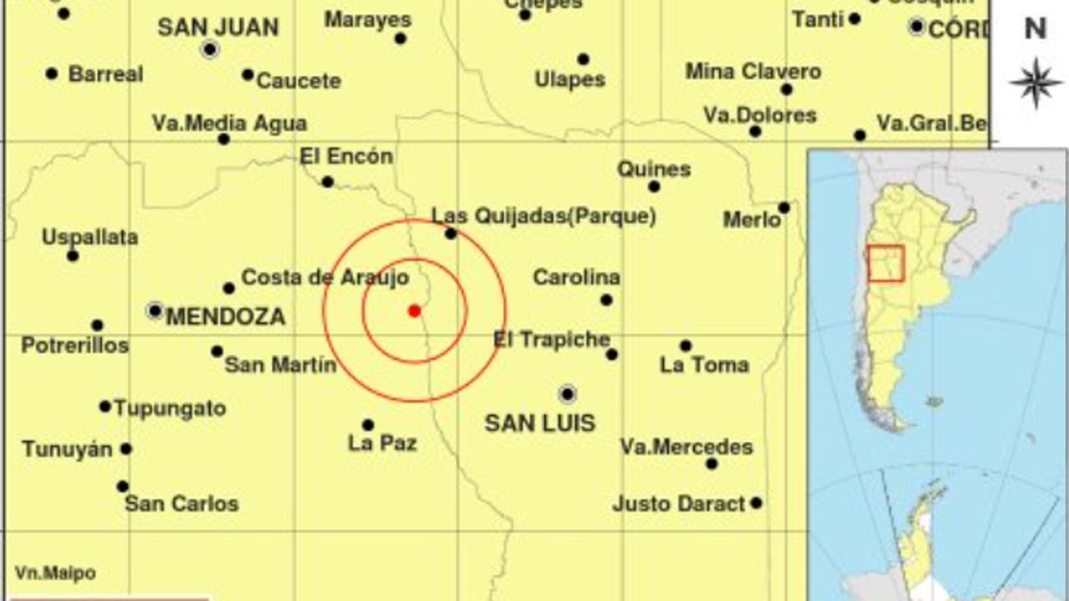 El sismo, que también se sintió en San Luis, fue de baja profundidad: 20 km.