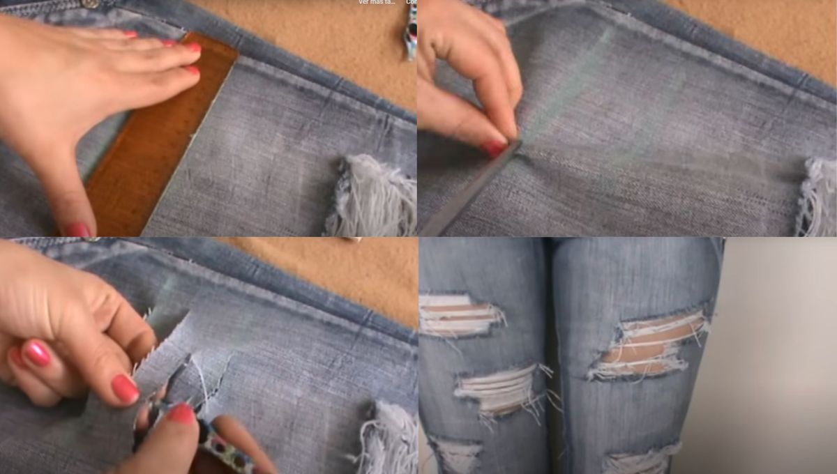 Por eso, antes de comenzar el truco, mide bien el tamaño, la ubicación de los tajos y chequea el tejido de la tela.