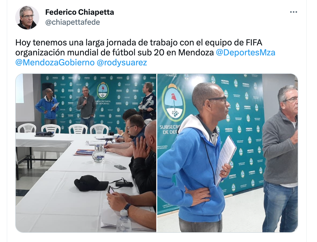 Una comitiva de la FIFA llegó este viernes nuevamente a Mendoza como parte de los preparativos previos del Mundial Sub 20, que se jugará en nuestro país entre el 20 de mayo y el 11 de junio próximo. El Estadio Malvinas Argentinas es una de las cuatro sedes donde se disputará el certamen y los organizadores no quieren dejar nada librado al azar.