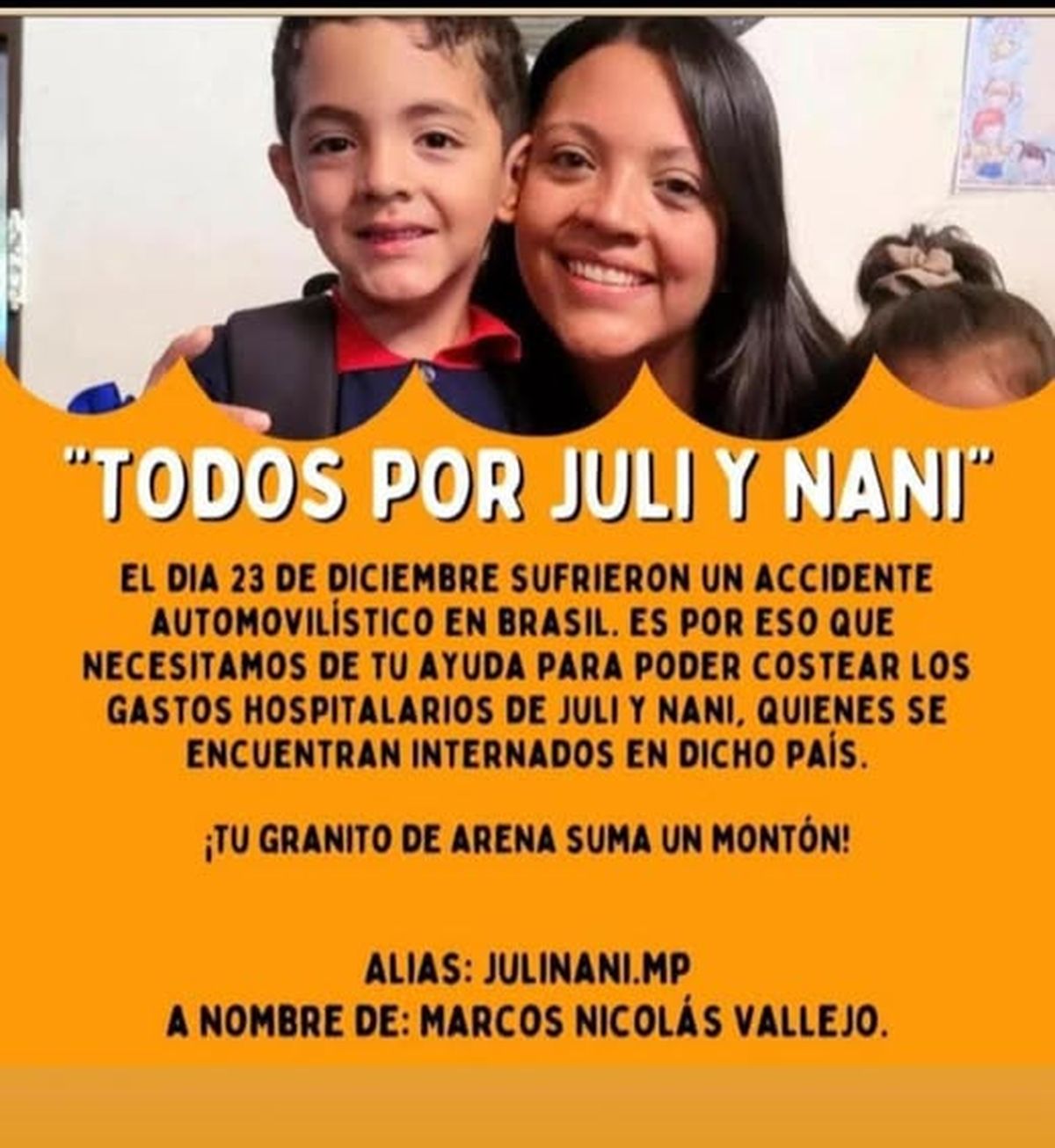 Los más afectados por el choque fueron María Ángeles, a quien todos conocen como Nani, y su hijo Julián. Ambos permanecen internados en distintos hospitales del estado de Río Grande do Sul de Brasil.