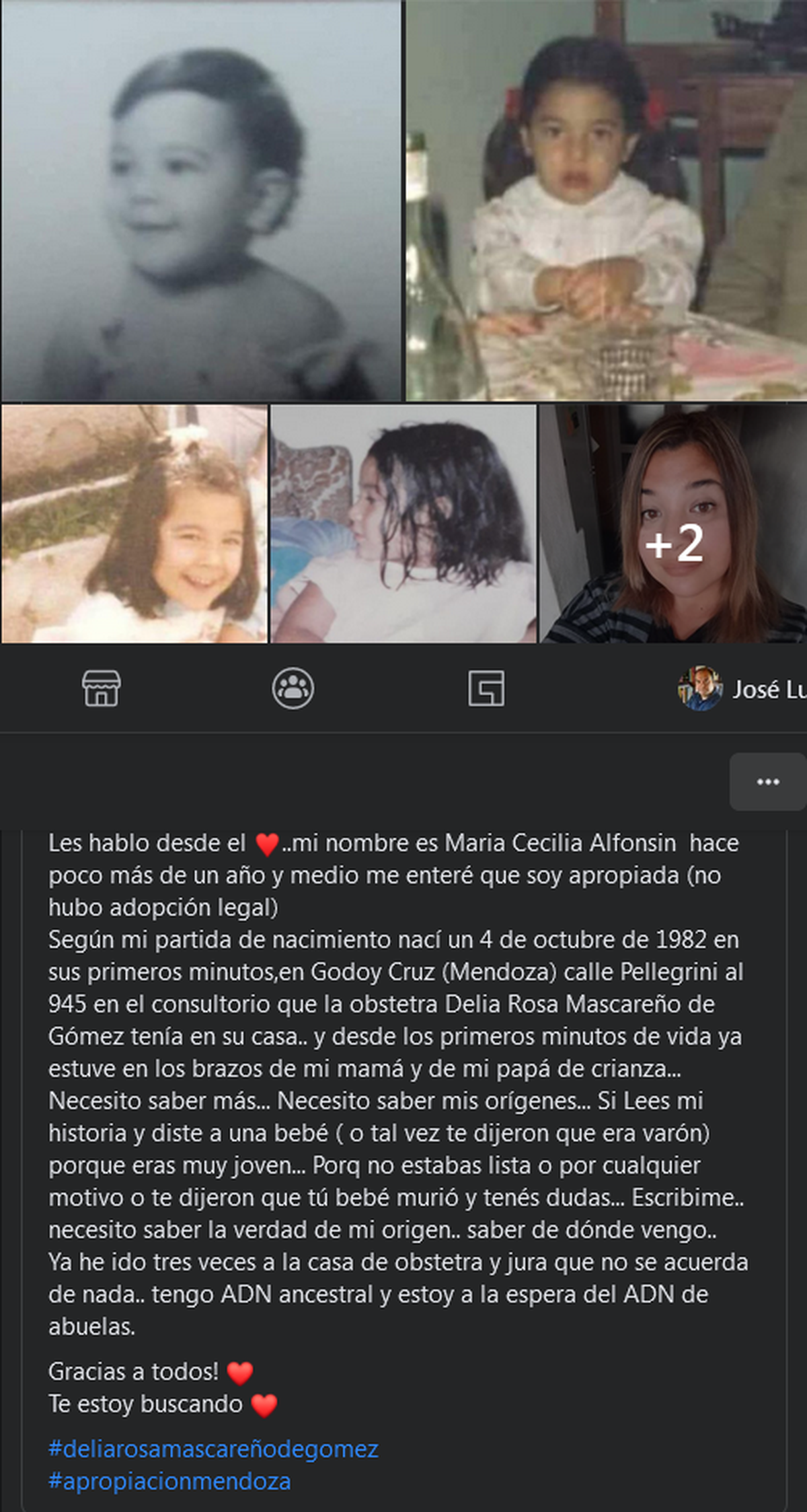 Las redes sociales y los grupos le han sido útiles para contar su historia y pedir ayuda, como lo hacen muchas de esas personas que un día descubren que sus orígenes no eran los que siempre habían sido. Como los integrantes del colectivo Mendoza por la Verdad.