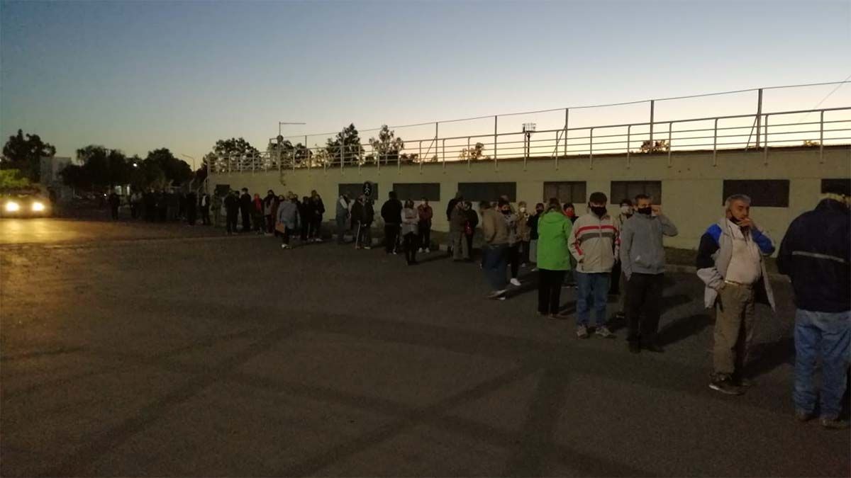 Algunas personas mayores de 60 y 70 años fueron citadas durante la madrugada al Aconcagua Arena para recibir su vacuna contra el coronavirus y la antigripal.