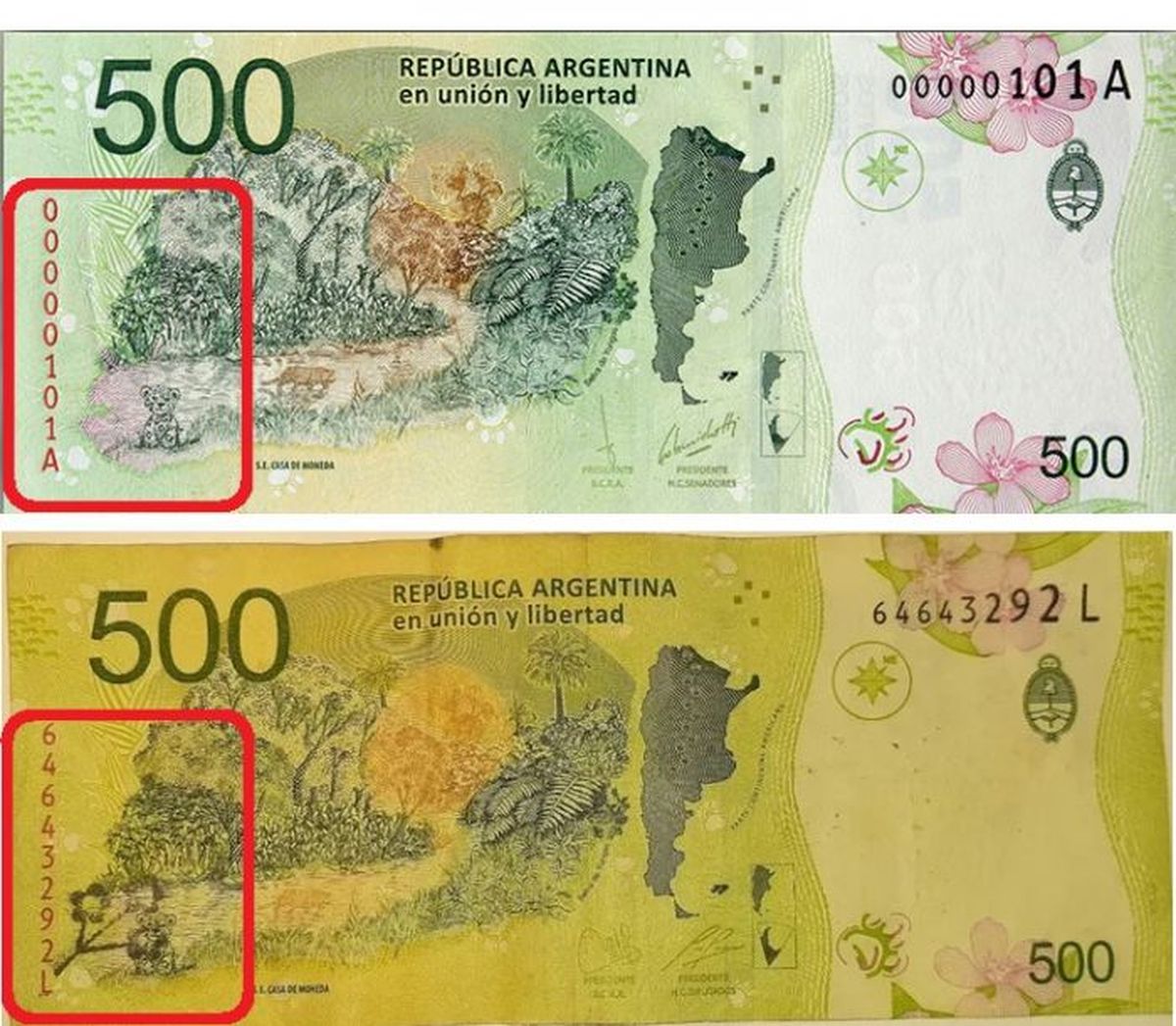 El billete de 500 pesos, que originalmente muestra a un yaguareté en su anverso, muestra este error en su reverso. Este detalle es algo que claramente marca la diferencia, y que puede hacer que tu situación económica varíe considerablemente en el caso de que tengas este ejemplar.