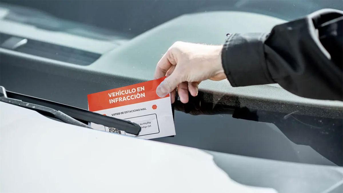 "Vehículo en infracción. Usted se estacionó mal" reza la descripción de un cartel en rojo y blanco. Abajo de la notificación, en un recuadro, aparece la opción de escanear un QR, donde supuestamente puedes acceder a conocer los detalles de la infracción.