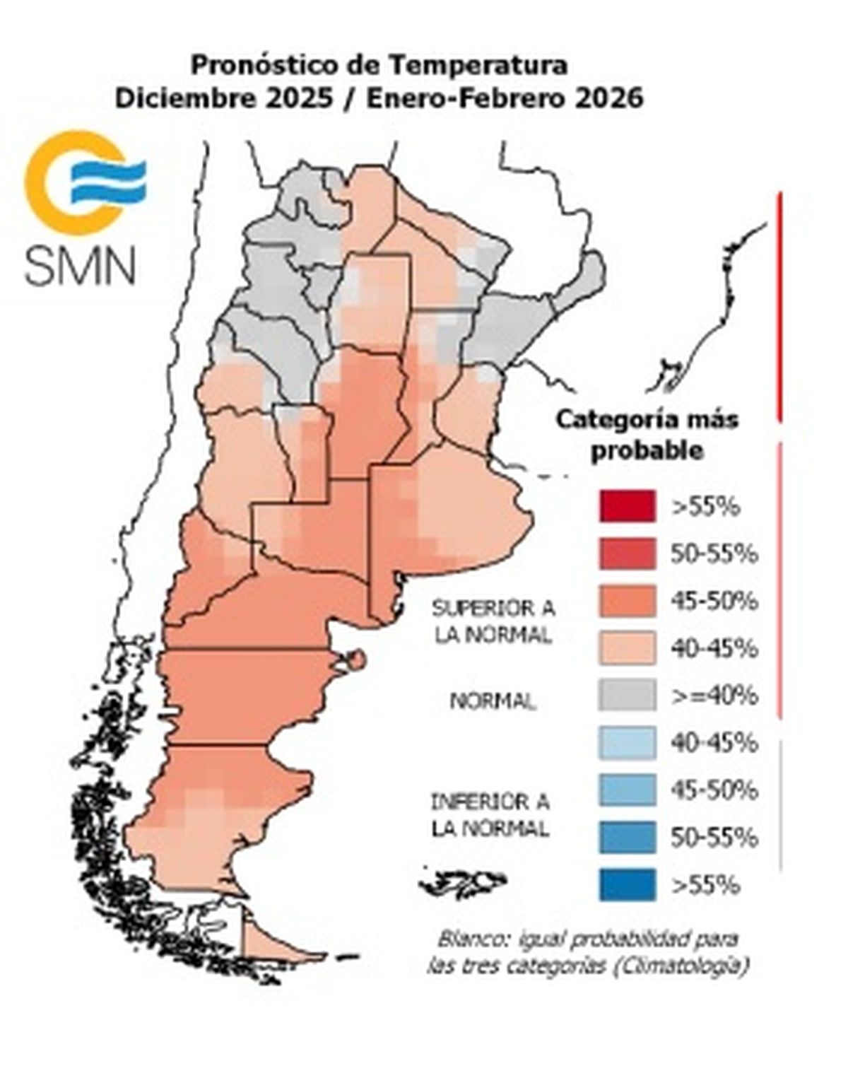 El Servicio Meteorológico Nacional (SMN) compartió un informe sobre como se espera que sean las temperaturas para el verano 2025/6. Se pronostica superior a la normal sobre el centro y norte de Patagonia, La Pampa, oeste de Buenos Aires, Córdoba, este de San Luis y oeste de Santa Fe.