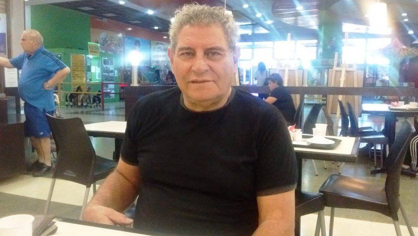 Pantalón corto, casi bermudas, remera negra y sandalias franciscanas. El cabello canoso y ensortijado, algo de panza (nada extraño para un hombre de 66 años) y brazos robustos. Ojos claros, por detrás de los lentes ahumados. Paga en efectivo el cortado mediano y la botellita de agua. Si usara la tarjeta, quizás generaría algún comentario de la cajera… o tal vez no, porque la chica es joven y “hay jóvenes que ni saben”, dice.