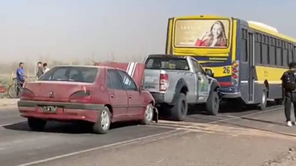 Este sábado, cerca de las 15, se produjo un choque múltiple en la ruta 24 en Lavalle. A raíz de las fuertes ráfagas del Zonda y la dificultad visual para los conductores, 7 vehículos chocaron en cadena, incluyendo un colectivo. Hasta el momento, se reportaron 4 heridos, que fueron derivados al Notti, al Central y al mismo Sicoli, de esa localidad.