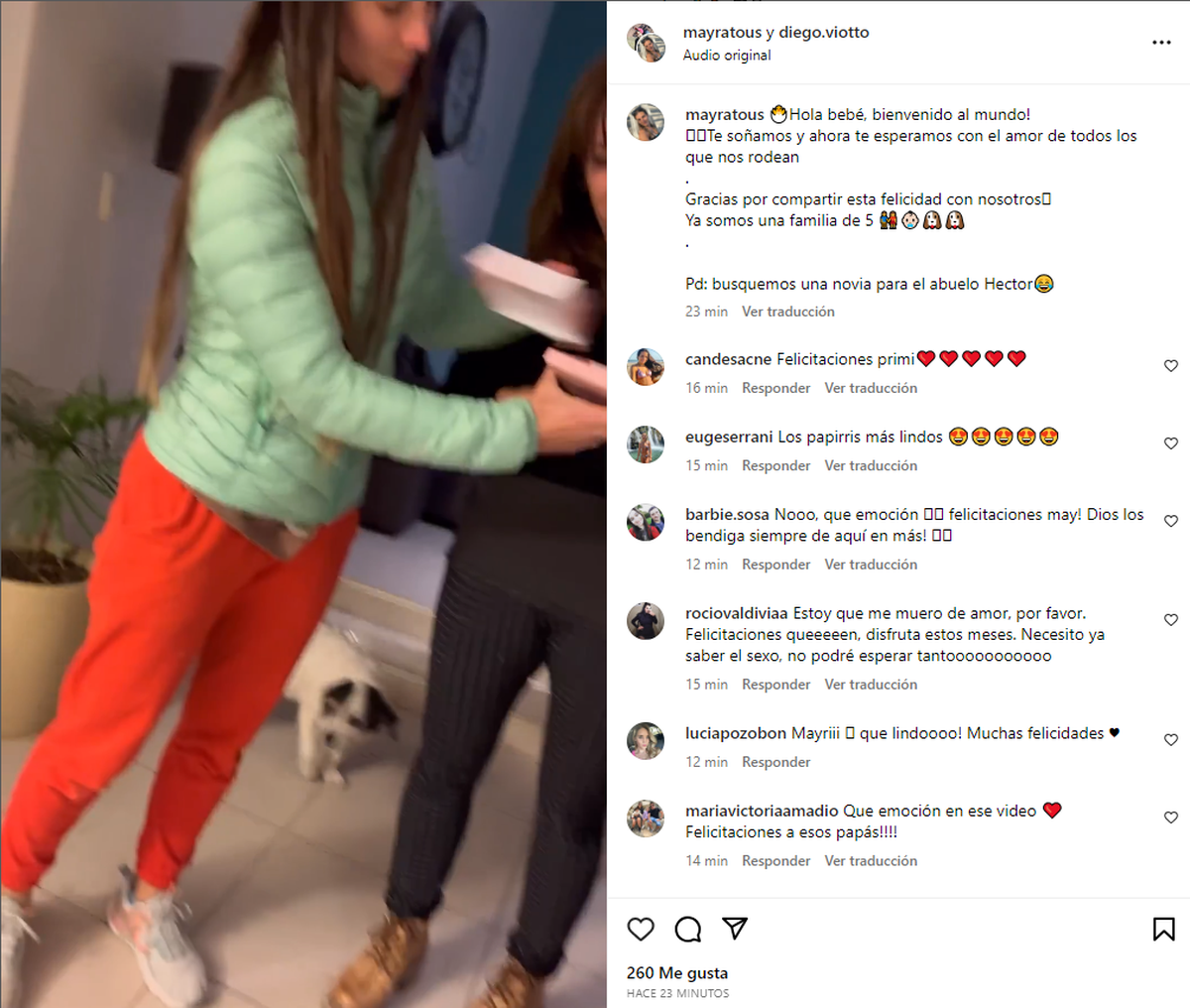 "Hola bebé, bienvenido al mundo! Te soñamos y ahora te esperamos con el amor de todos los que nos rodean. Gracias por compartir esta felicidad con nosotros. Ya somos una familia de 5", sumó Mayra Tous a su posteo de Instagram, dando la gran noticia del embarazo.