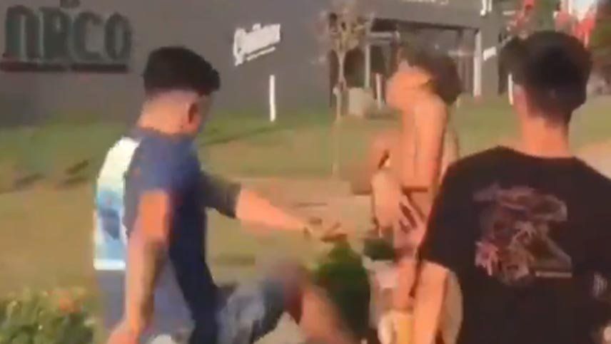 En el video se ve como uno de ellos le dice algunas cosas mientras otro pareciera que lo fuera midiendo, como si fuese una pelota de rugby, y luego lo patea. Los otros dos, mientras va cayendo también le arrojaron trompadas.