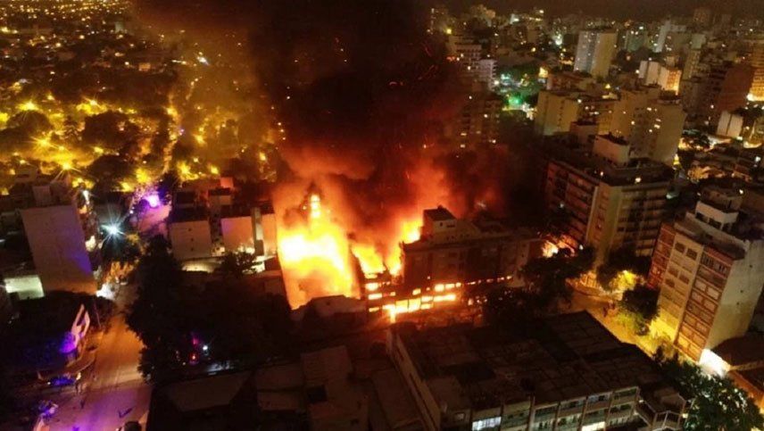 Las llamas hicieron colapsar en los primeros minutos del lunes la estructura de la distribuidora fundada en 1951, y del edifico de cuatro pisos ubicado sobre ella, y Goncalvez aseguró que continuaba el "peligro de derrumbe" en la zona.